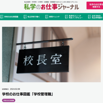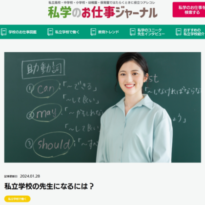 各私立学校からいただいた求人情報を『私学のお仕事ナビ』と連携している各種求人媒体に掲載します。教員のみならず、事務職員など私立学校に関するあらゆる求人を掲載可能です。